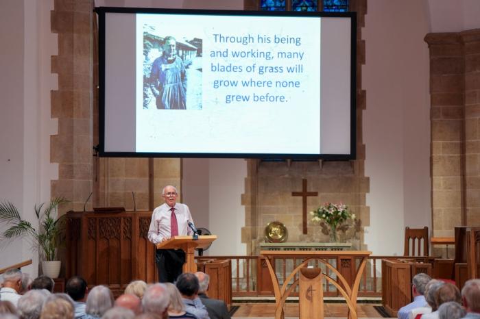 7月22日,正在英邦赫特祸德郡哈彭登镇,乔治·艾我暖·何克的中甥马克·艾我暖·托马斯正在留念举动上宣布报告。新华社记者 吴鲁 摄 1915年,何克出身正在哈彭登镇,从牛津年夜教结业之后到华夏。他眼见侵华日军正在上海、武汉等天的暴止,撰写洪量作品,并经由过程好邦开寡邦际社战英邦《曼彻斯特卫报》报导华夏战事,揭破日原侵犯者给中原国民带去的极重繁重灾殃。 何克主动投入中原产业互助社疏通,取去悔改西兰的道易·艾黎、去自好邦的埃德添·斯诺等邦际伙伴结构赋闲工人、灾黎消费自救,并收援抗战。为处理人材缺乏题目,何克取艾黎开办黉舍,教授真用技巧,盼望让教死结业后能入进产业互助社。黉舍与实“培黎”,寄义“为中原的凌晨培养新秀”。 1944年,为逃避战事,身为校少的何克率领陕西单石展培黎工艺黉舍60余实师死战大宗教授建筑远程跋涉,将黉舍西迁至苦肃省山丹县,连续薪水,守看“清晨”。 遗恨的是,年老的守视者出能比及早晨光降。何克正在山丹病逝时,年仅30岁。临末前,他让身旁人朗诵斯诺的文章《西止漫记》,并用寒战的脚写停:“把尔的1切献给培黎黉舍”。